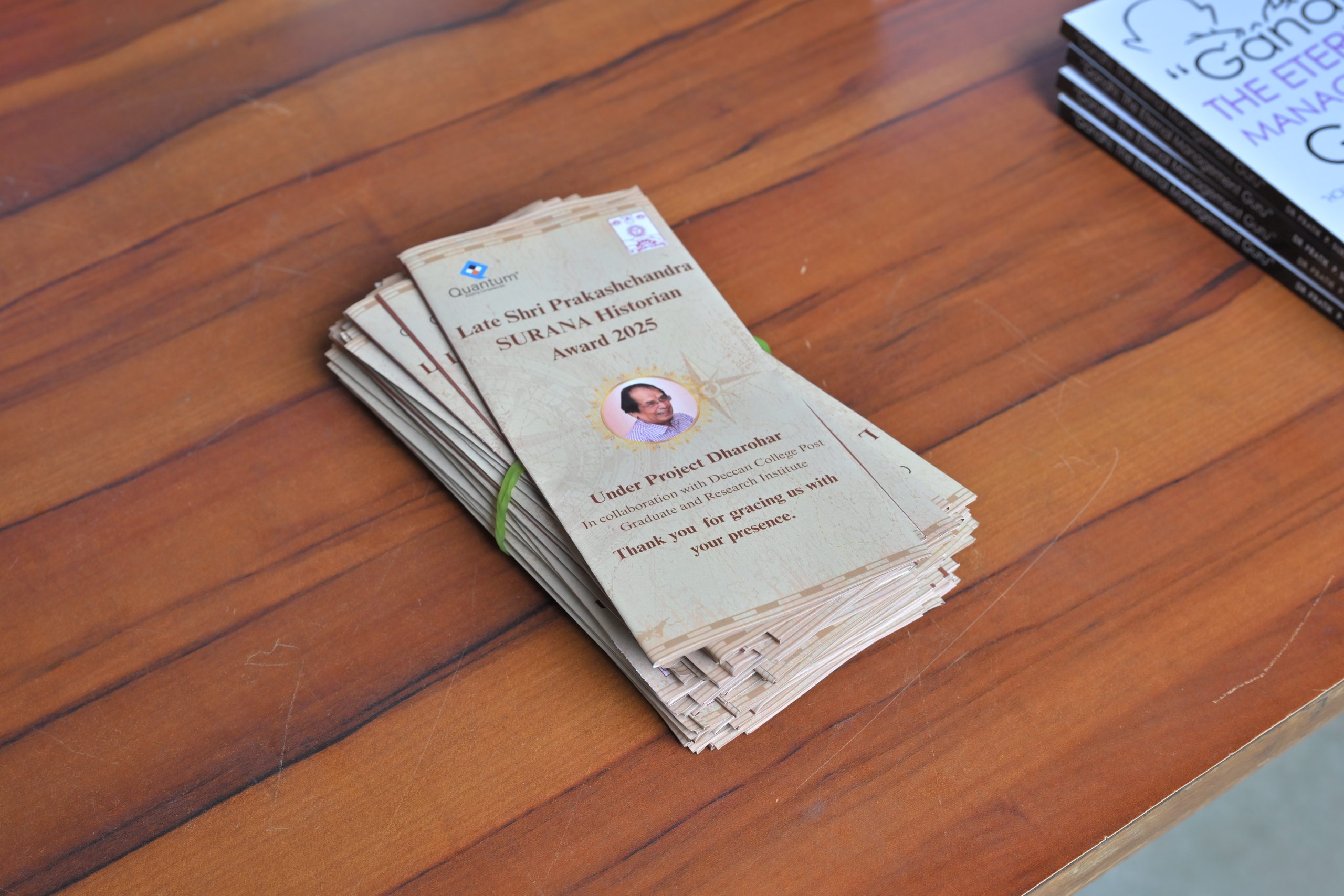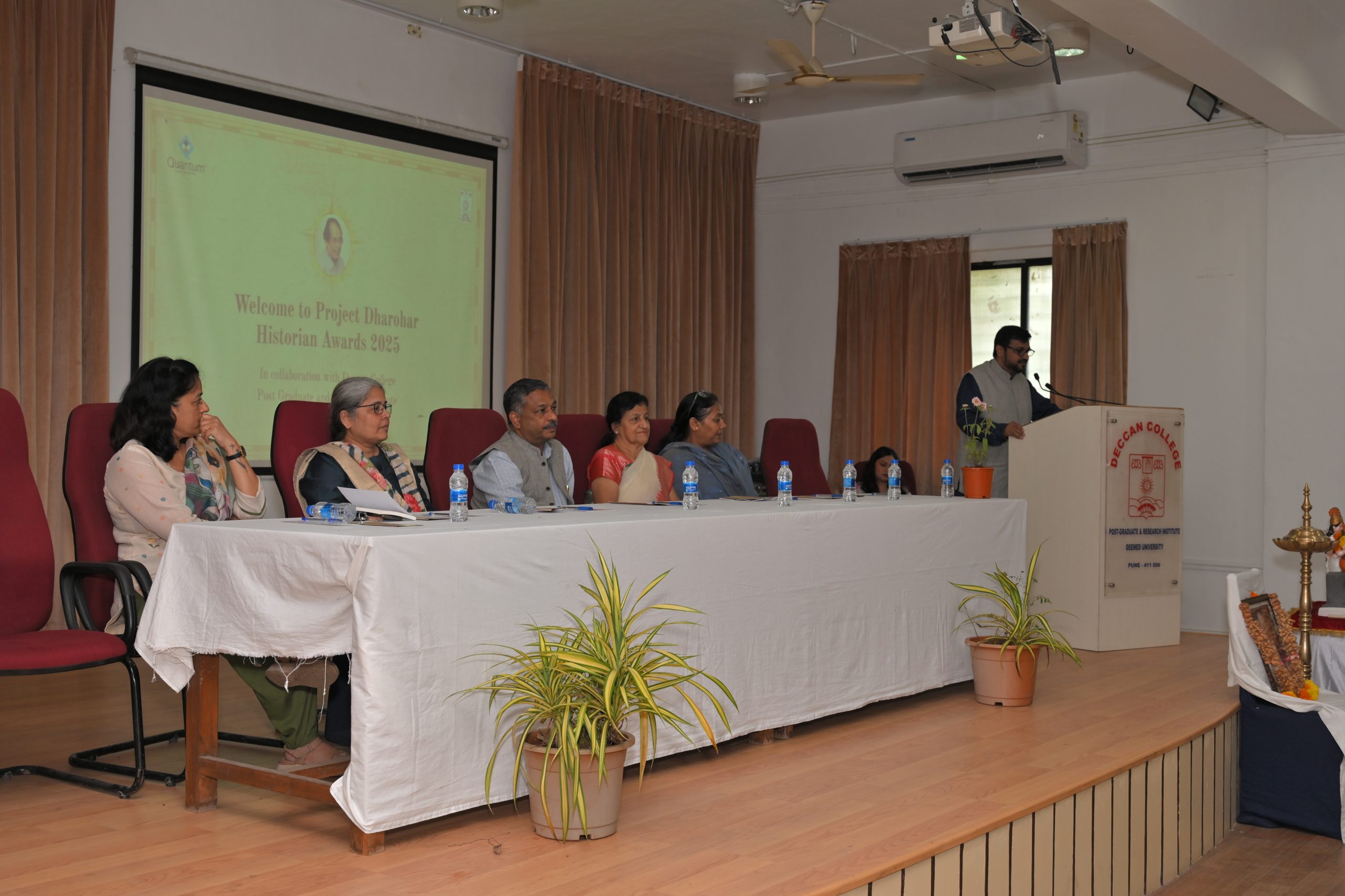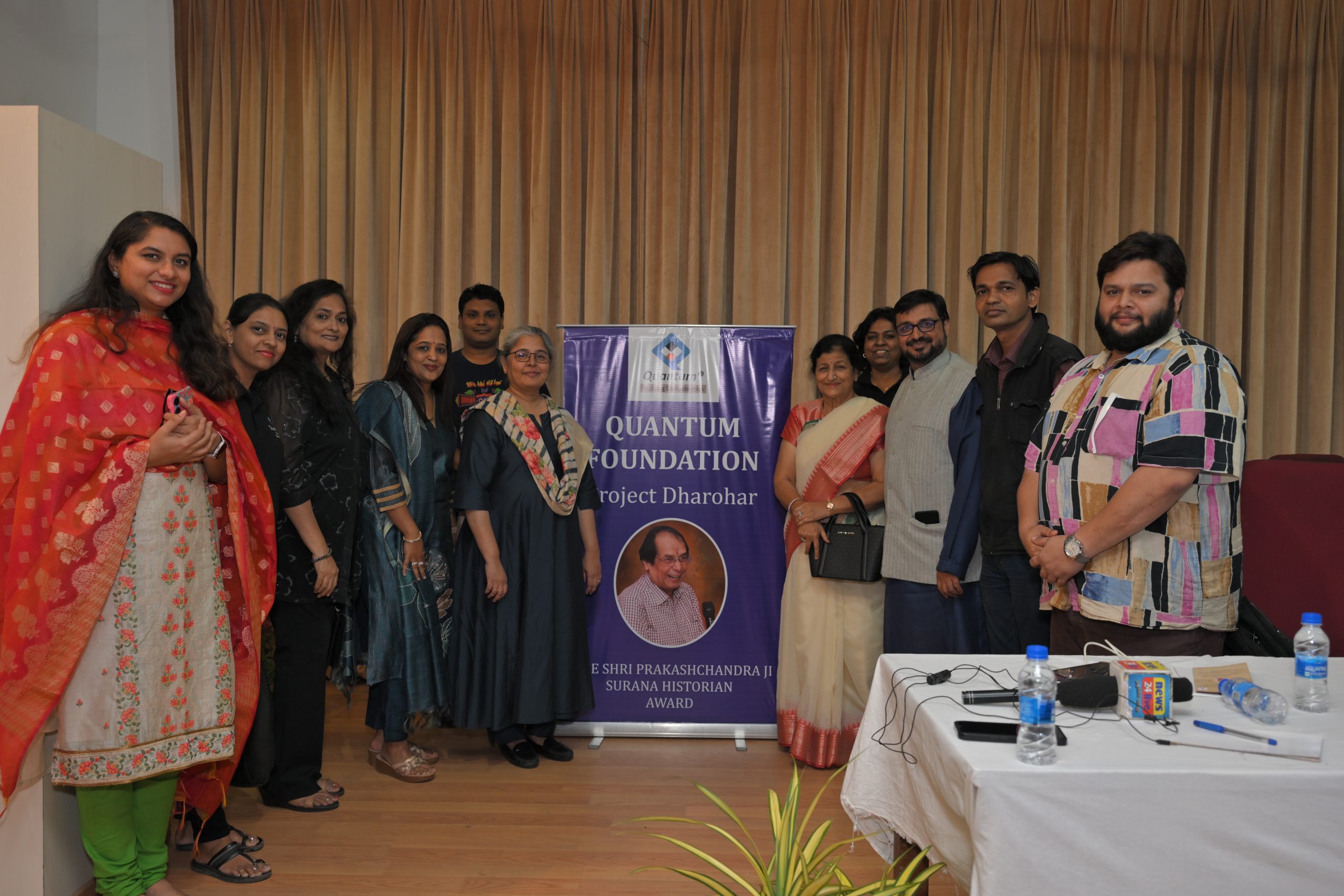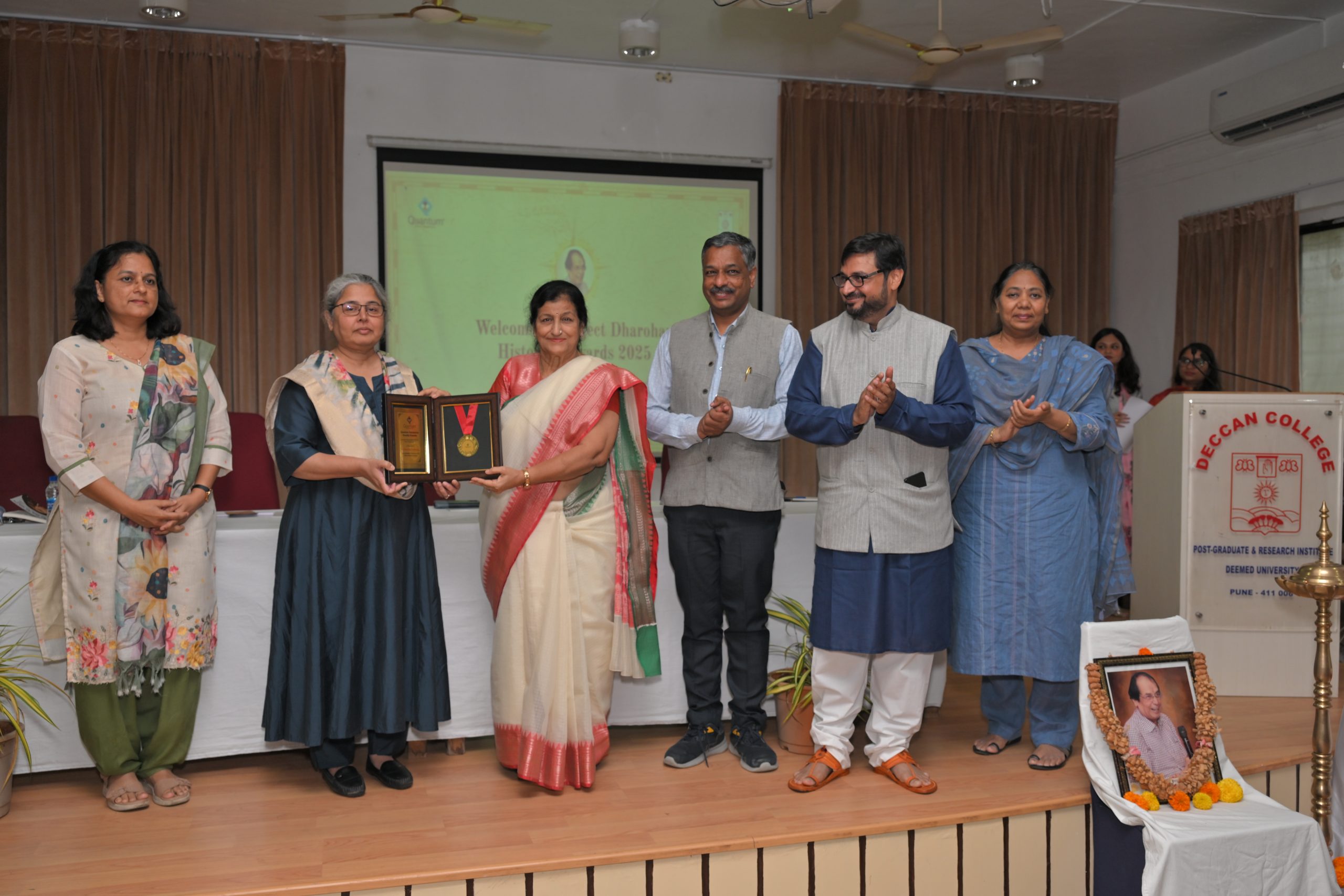 The year 2023 awardees were Dr G.B. Deglurkar, M.A., Ph.D. (Letters), D. Lit. (Literature), a distinguished archaeologist and scholar in sculpture and the first chancellor of the Deccan College, Pune, and RJ Sangram, the young Radio Jockey and writer, director, and presenter of the Marathi podcast “Itihas navachi vyakti”. The prestigious awards were given at the hands of Mrs Pushpa P. SURANA, Trustee Quantum Foundation. The award function was carried out in the honourable presence of Dr Pramodkumar Pandey, VC, Deccan College Deemed University; Dr Prasad Joshi, Prof. Sonal Kulkarni, Prof. Sable, Prof. Jog from Deccan College; and a large audience of history enthusiasts from various fields and age groups.